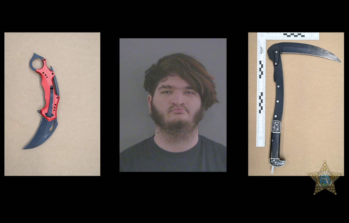 Breeden showed images of the weapons they say Hernandez used in the attack. One appears to be a folding tactical knife and the other resembles a sickle.