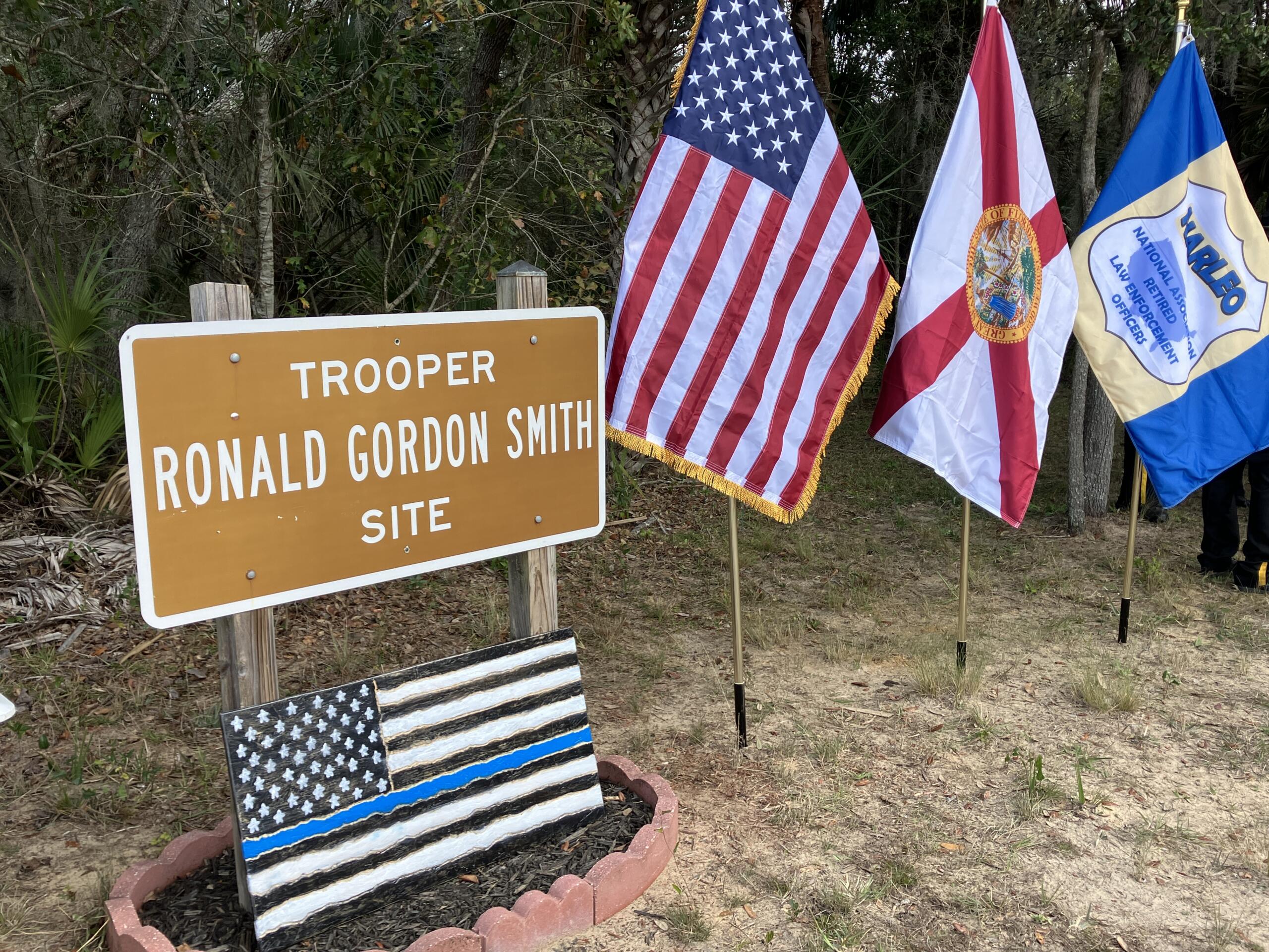 It was right before that bridge in December of 1973 that Florida Highway Patrol (FHP) Trooper Ronald Gordon Smith – just 8 months on the job – went to check on a suspicious car off the road. Trooper Smith was shot and killed when he came across two men in that parked car off US 19 in Inglis.