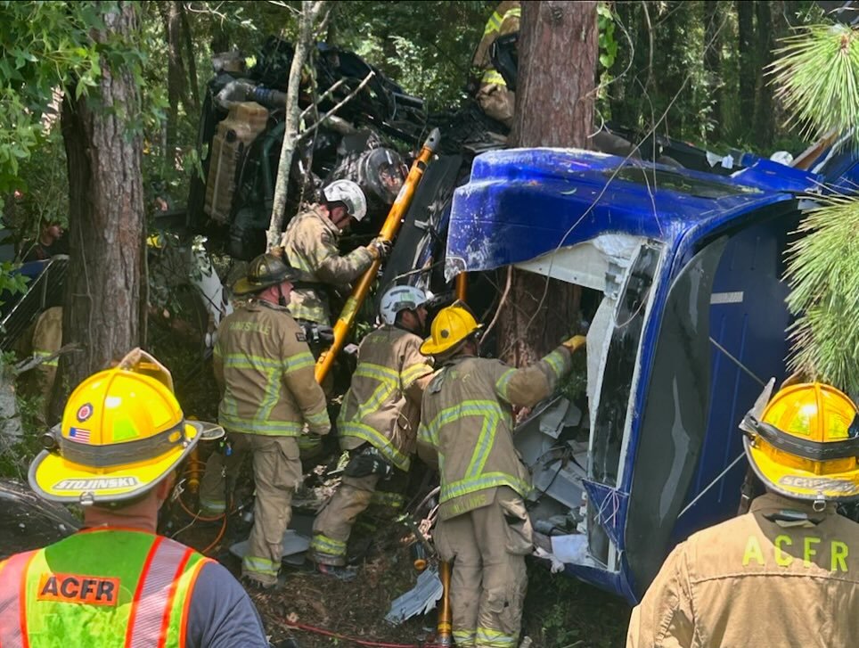Alachua County Fire Rescue (ACFR) says in a Facebook post that it took two hours to extricate the driver of the big rig.