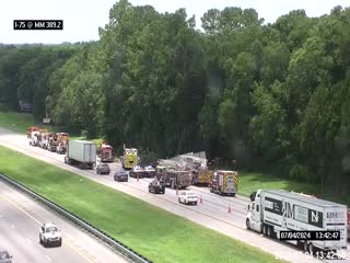 The Florida Department of Transportation (FDOT) reports a crash in Alachua County on I-75 southbound near mile marker 390 which is near the exit for State Road 222/NW 39th Avenue.