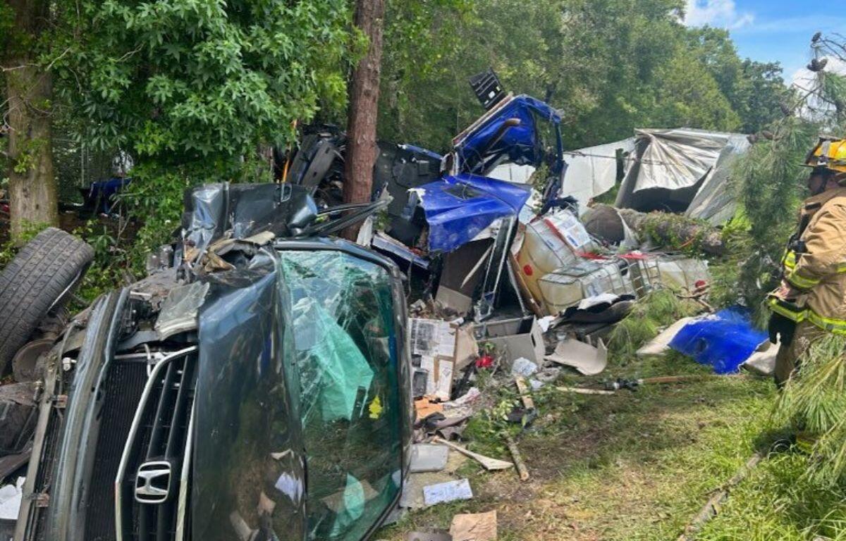 ALACHUA COUNTY, FL (352today.com) – FOLLOW-UP, 7/7/2024: Looking at photos of wreck that shut down Interstate 75 southbound in Alachua County for more than 7 hours on 4th of July, it’s hard not wonder how the drivers survived the crash.