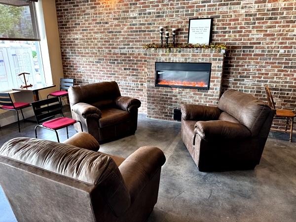 The new establishment offers an inviting atmosphere featuring big, comfy chairs and a cozy fireplace. Guests can choose from an extensive beverage menu that includes a variety of coffees, espresso, lattes, cappuccinos, mochas, chai lattes, and refreshing smoothies.