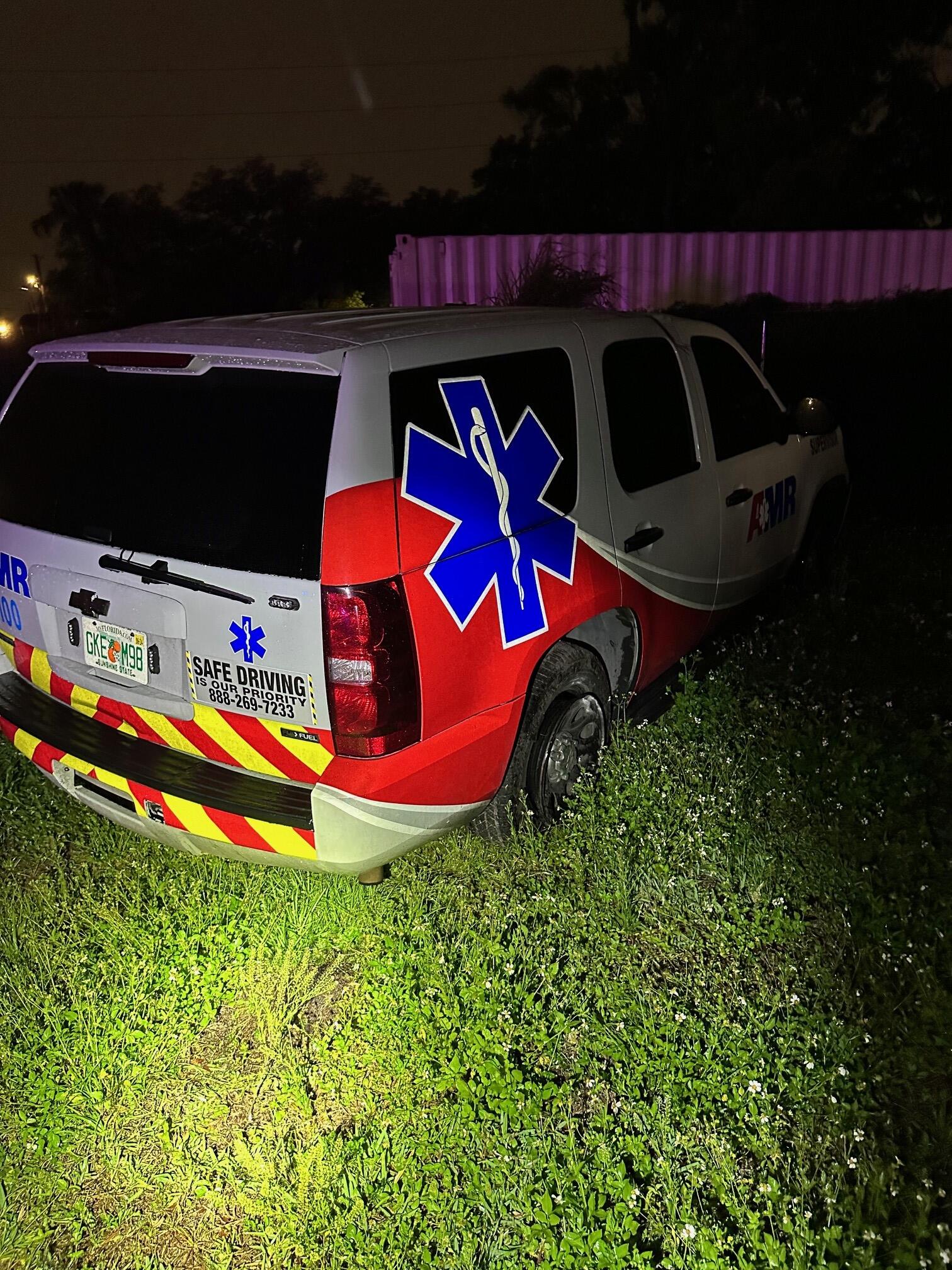 FHP says the driver of the crashed vehicle gained access to the ambulance.