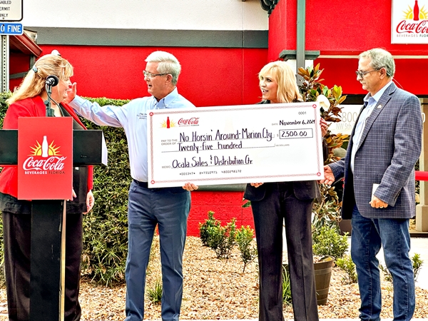 As part of its commitment, Coca-Cola presented a $2,500 donation to Marion County’s “No Horsin’ Around” litter campaign, aimed at reducing waste and preserving local parks and public areas. This initiative aligns with Marion County’s ongoing efforts to protect and beautify its public spaces for residents and visitors alike.