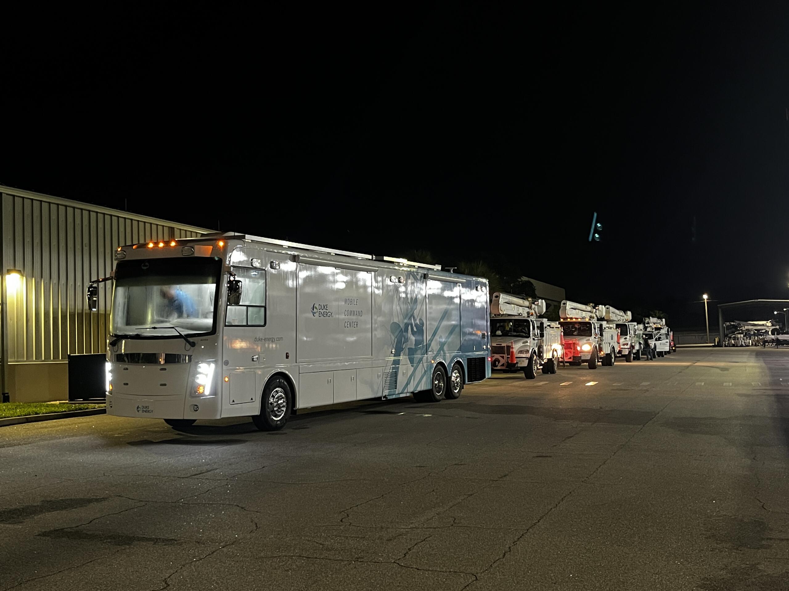 Duke Energy says more than 20 trucks rolled out of the Clearwater Operations Center Tuesday morning.