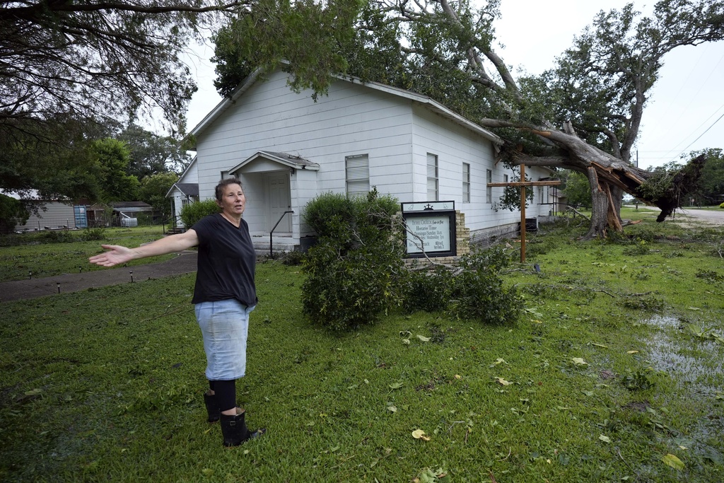 “We haven’t really slept,” said Eva Costancio as she gazed at a large tree that had fallen across electric lines in her neighborhood in the Houston suburb of Rosenberg. Costancio said she had already been without power for several hours and worried that food in her refrigerator would be spoiled.
