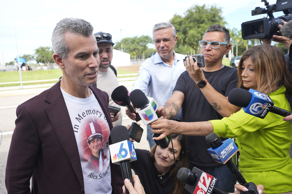 Linda Beigel Schulman, the geography teacher’s mother, was not among them — she stayed home in New York. She toured the building last year, seeing the comparative religion papers he was grading when the shooting began that Valentine’s Day still sitting on his desk. Beigel, who also coached cross-country, went into the hallway and herded students to safety in his classroom, doing that as the gunman approached until he was shot.