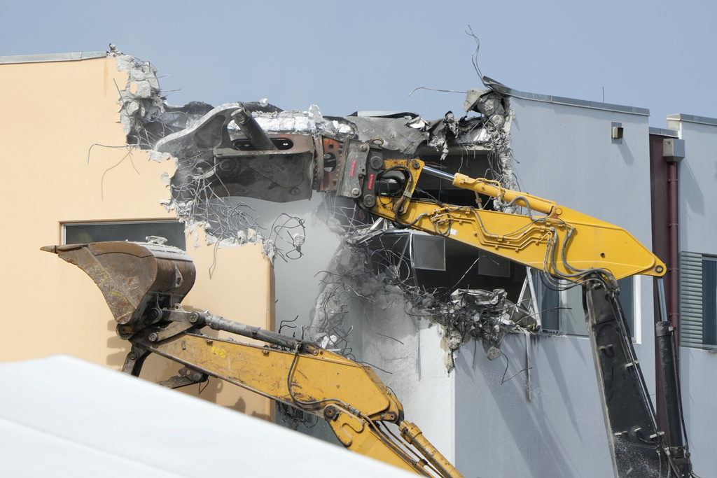 PARKLAND, FL (AP) — A large excavator stretched to the top floor of the three-story building where 17 people died in the 2018 mass shooting at Marjory Stoneman Douglas High School, punching its first hole Friday into the classroom where teacher Scott Beigel perished saving students.