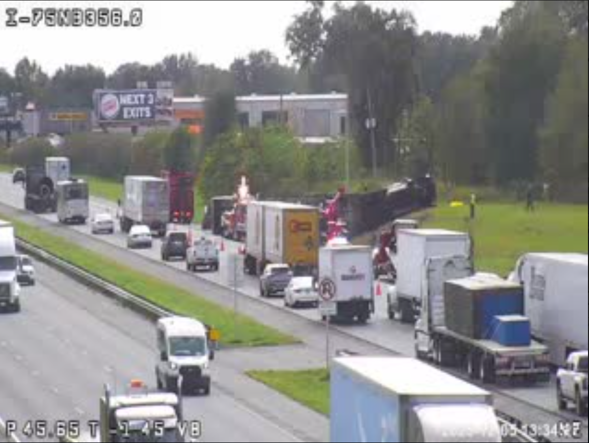As of 1:45 p.m., a check of the Florida 511 live traffic cameras showed a back-up for more than a mile. MCFR says traffic on I-75 southbound is moving but limited to one lane. You can check the cameras for a real-time update here.