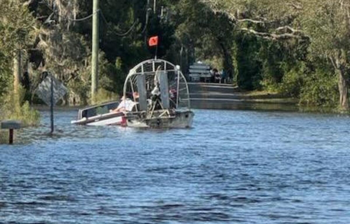 The driver’s vehicle was quickly overtaken by the rising waters, leaving the individual stranded. HCFR says that they responded to the scene with an airboat and additional resources, successfully rescuing the driver from the submerged vehicle. They say that the driver wasn’t hurt.