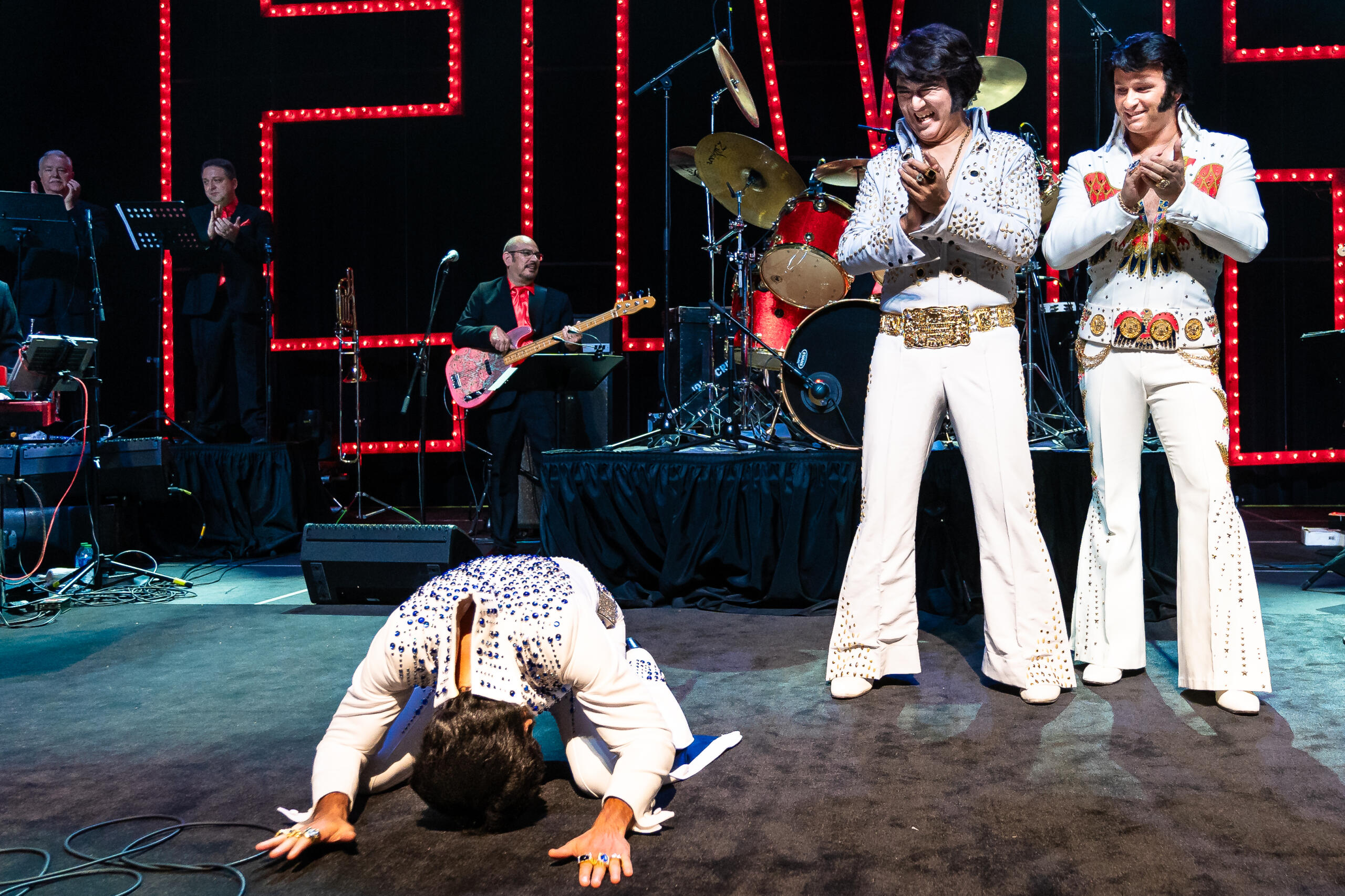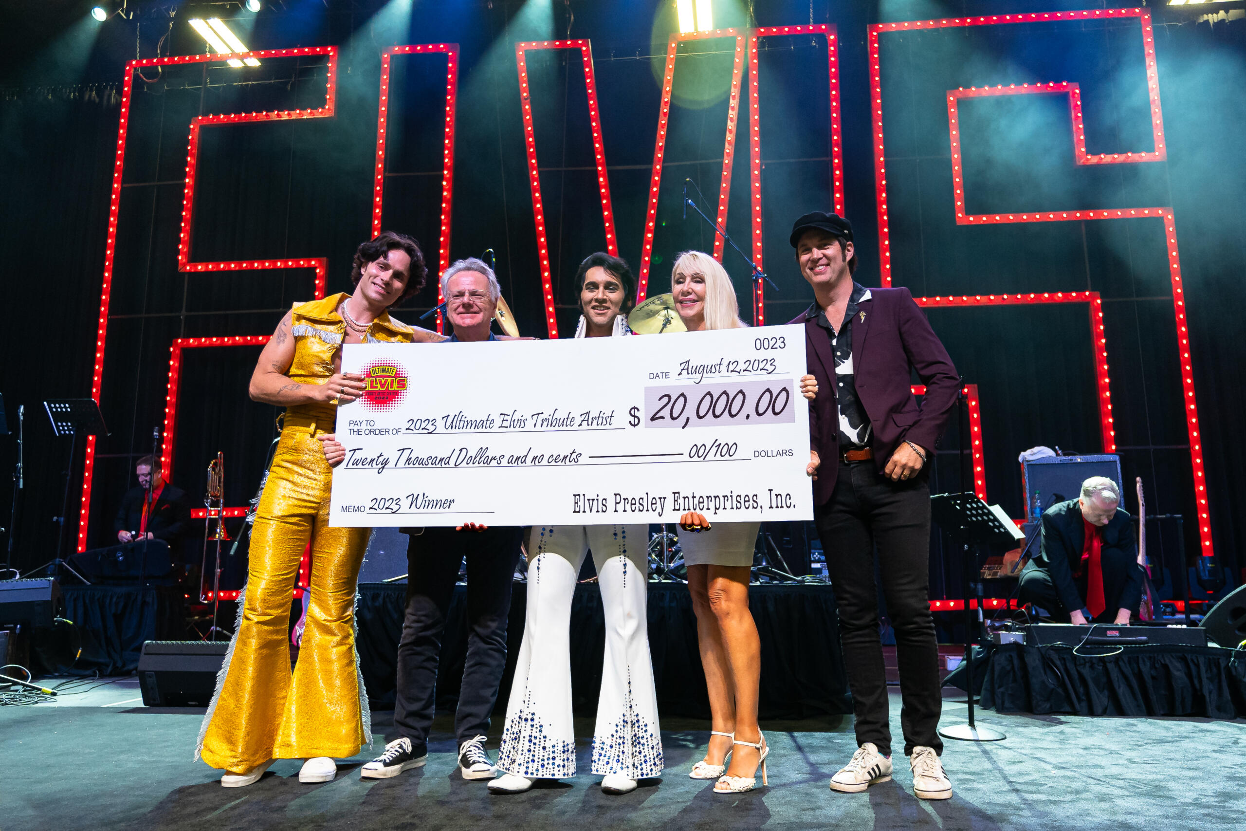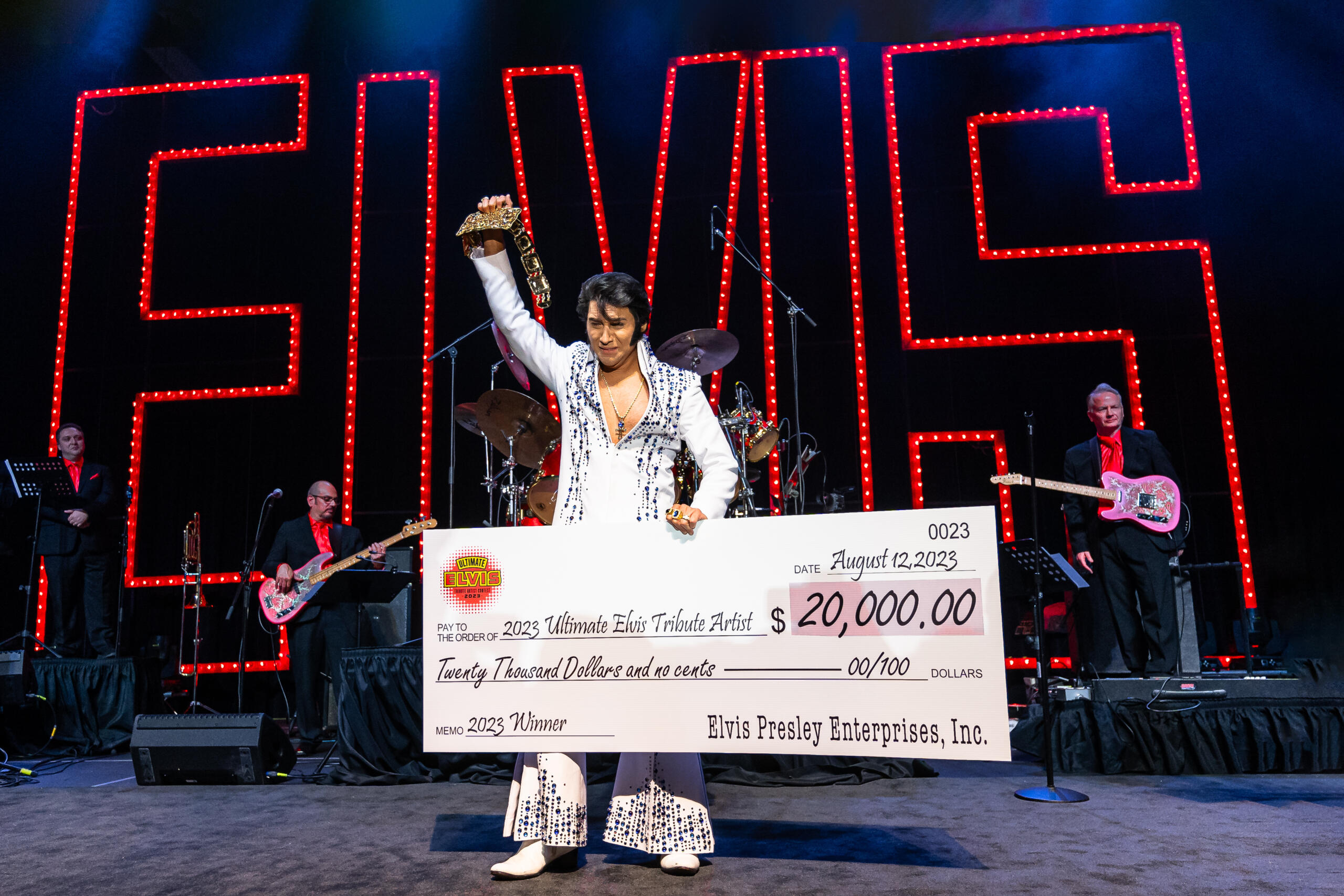 The anticipation mounted for contestants as the snare drum roll set the dramatic scene and emcee Dean Z, a professional Elvis tribute artist, announced the top three winners. Third place went to Moses Snow from Texas and second place to Jimmy Holmes from Indiana.