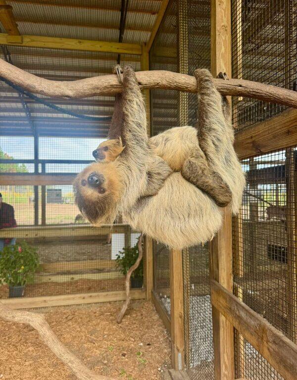 A sloth and her baby relax at Mayhem Ranch in Morriston — one of many animal encounters families can enjoy during the Fall Festival. | Photo Courtesy Mayhem Ranch