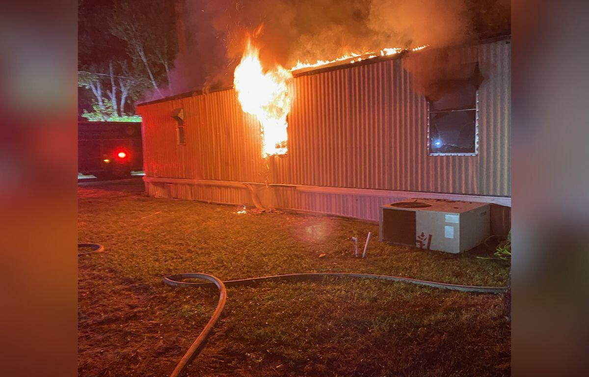 Responders say they arrived at a single-wide mobile home that was 50% covered in fire.