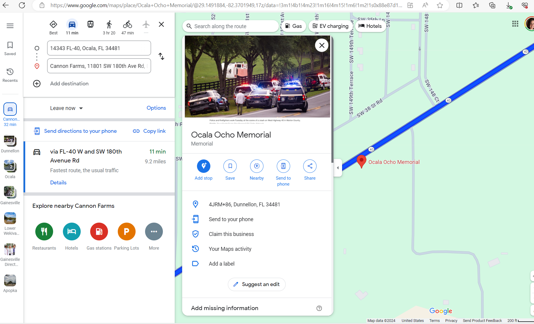 Mexican flag-draped crosses, candles and flowers mark the site on SR 40 of what is now referred to on Google maps as the “Ocala Ocho Memorial.” A destination for mourners to honor the eight souls who are no longer with us.