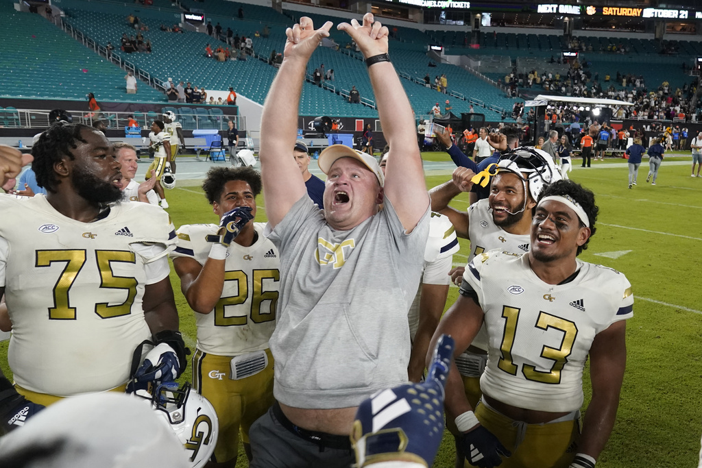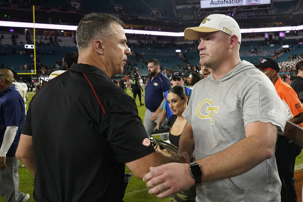 The Hurricanes (4-1, 0-1 Atlantic Coast Conference) didn’t, and paid a huge price. King was incomplete under pressure on first down of the last drive, then connected with Malik Rutherford for a 30-yard gain. Rutherford was inbounds and the clock ran until King spiked the ball with 10 seconds left. The scoreboard showed Georgia Tech had no time-outs remaining; the play-by-play of the game suggested the Yellow Jackets still may have had one.
