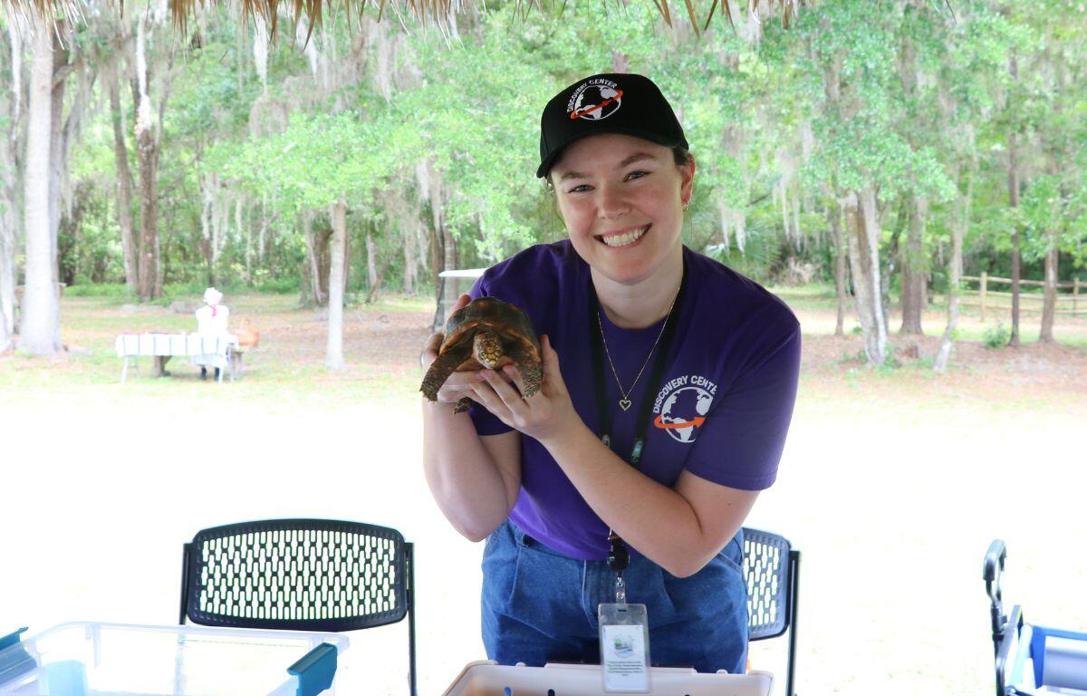 Along with the Discovery Center and FWC’s tortoises, the Ashton Biological Reserve featured two snakes and a baby tortoise that guests could pet and learn more about. Throughout the celebration, guests could watch Rocket, an African tortoise species, walk around the Fort King grounds, occasionally stopping for pictures or eating grass.