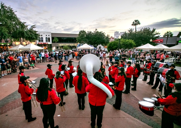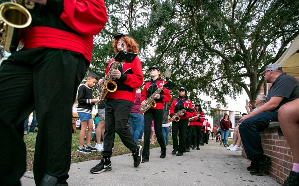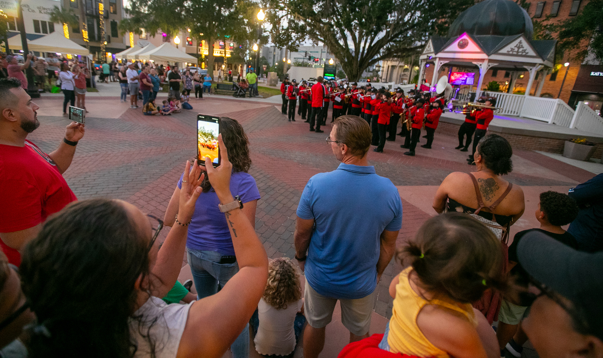 The Fort King Middle School marching band brought an energetic performance, drawing crowds of proud parents and community members to the downtown square.