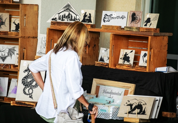 Local and regional artists showcased their unique creations, including Hillary Waltrip’s distinctive pieces and Peruvian artist Gabriela Nunez’s paintings and cards. Dawn Moberly’s hand-painted tiles attracted steady streams of visitors, while Sharon Dolce’s animal-themed artwork proved particularly popular among attendees.