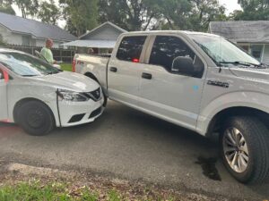 Deputies spotted the white vehicle exiting the complex and tried to block it from exiting.