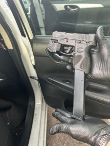 When deputies conducted a search of the vehicle, they say they found a loaded semi-automatic pistol with an extended capacity magazine in the back seat door panel Hayes had been seated.