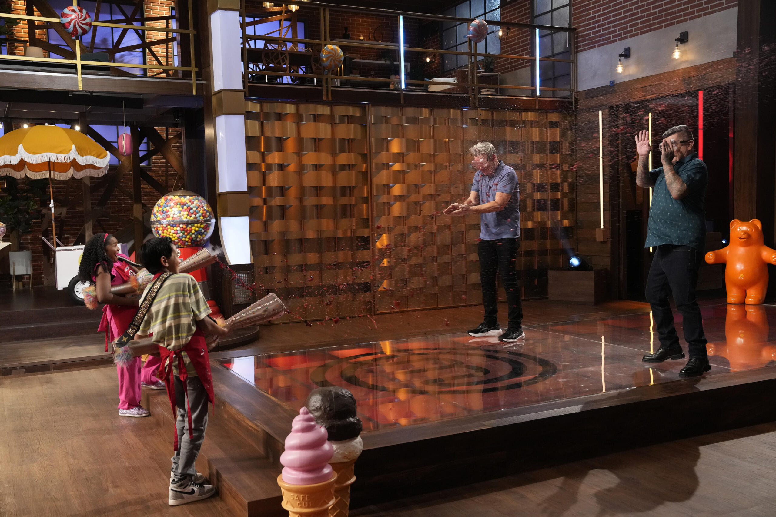 The winning pair would not only be granted immunity from elimination, they would also get to blast two judges of their choosing with pancake toppings as a reward.