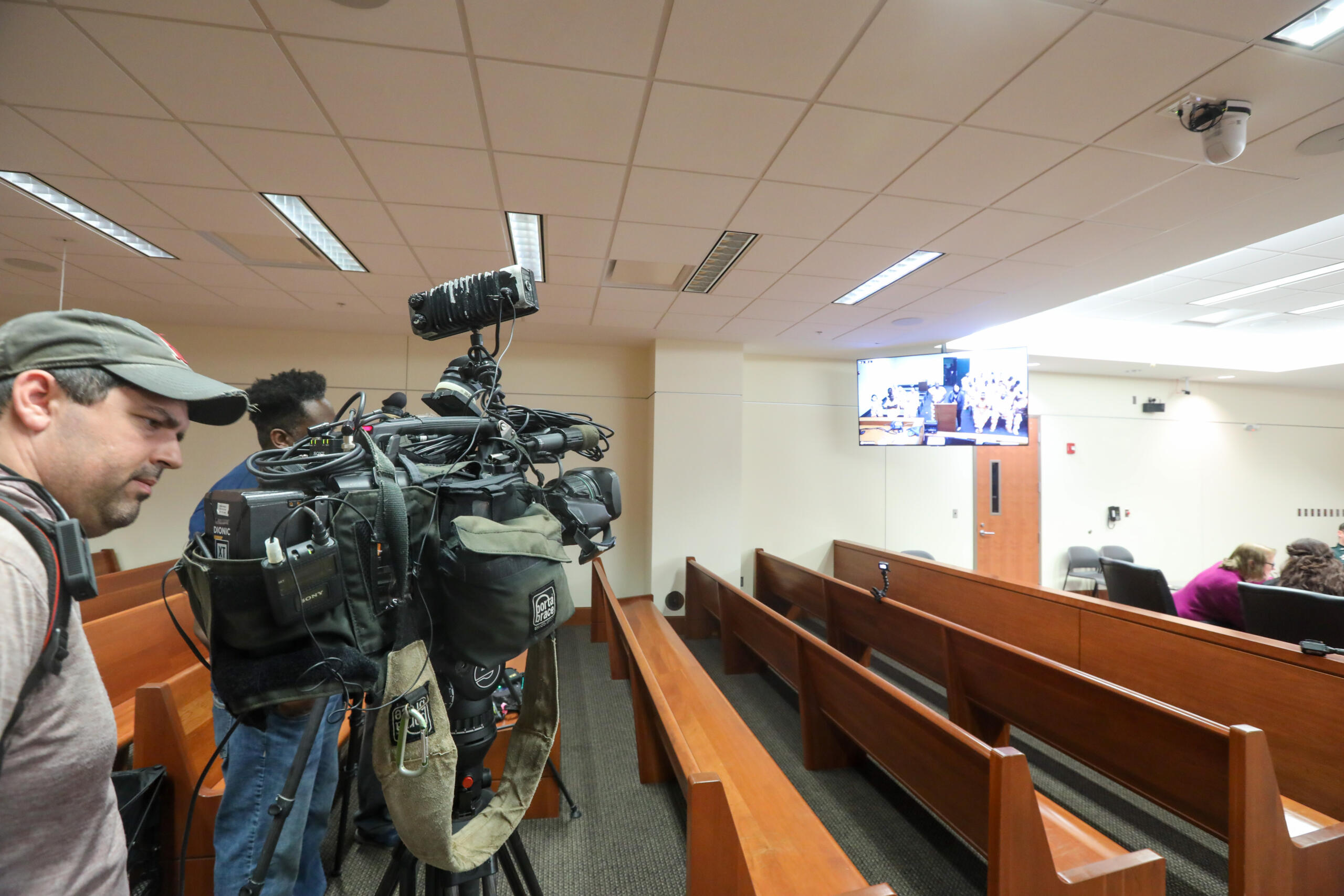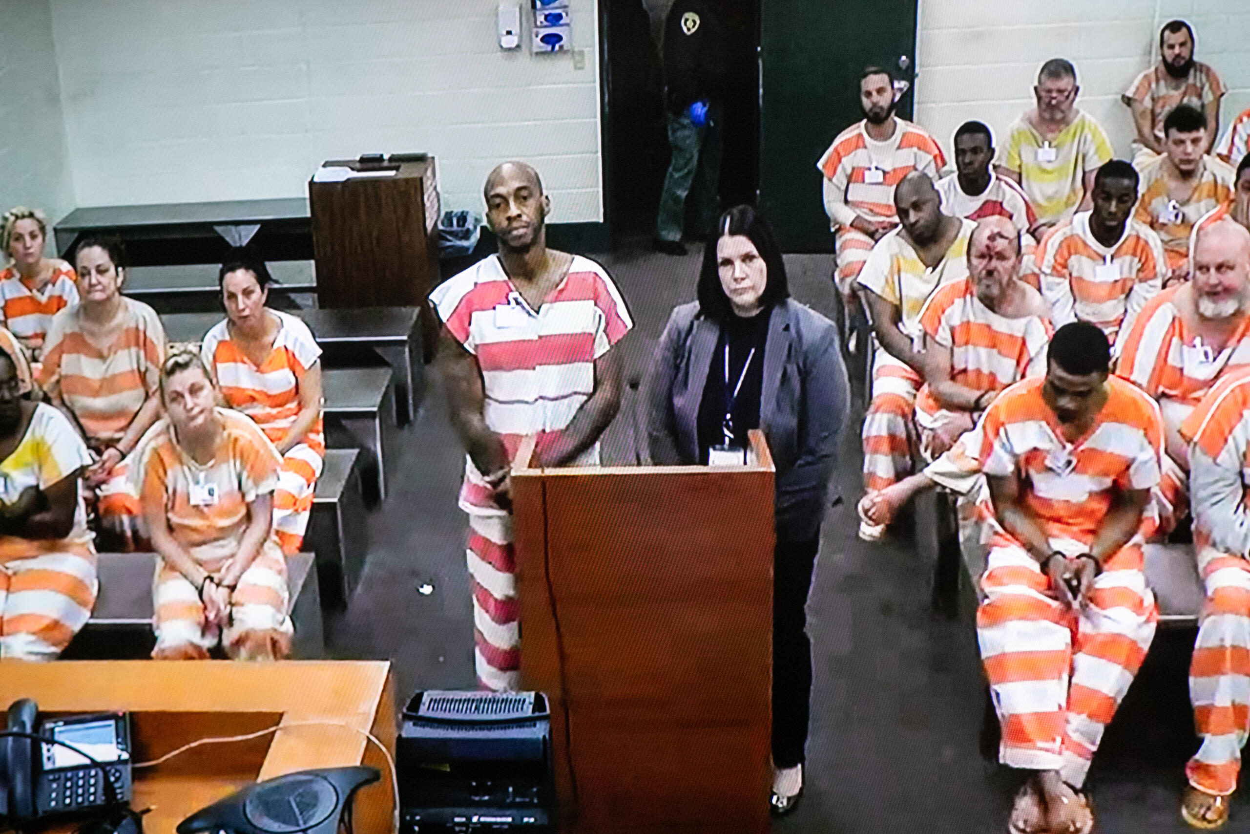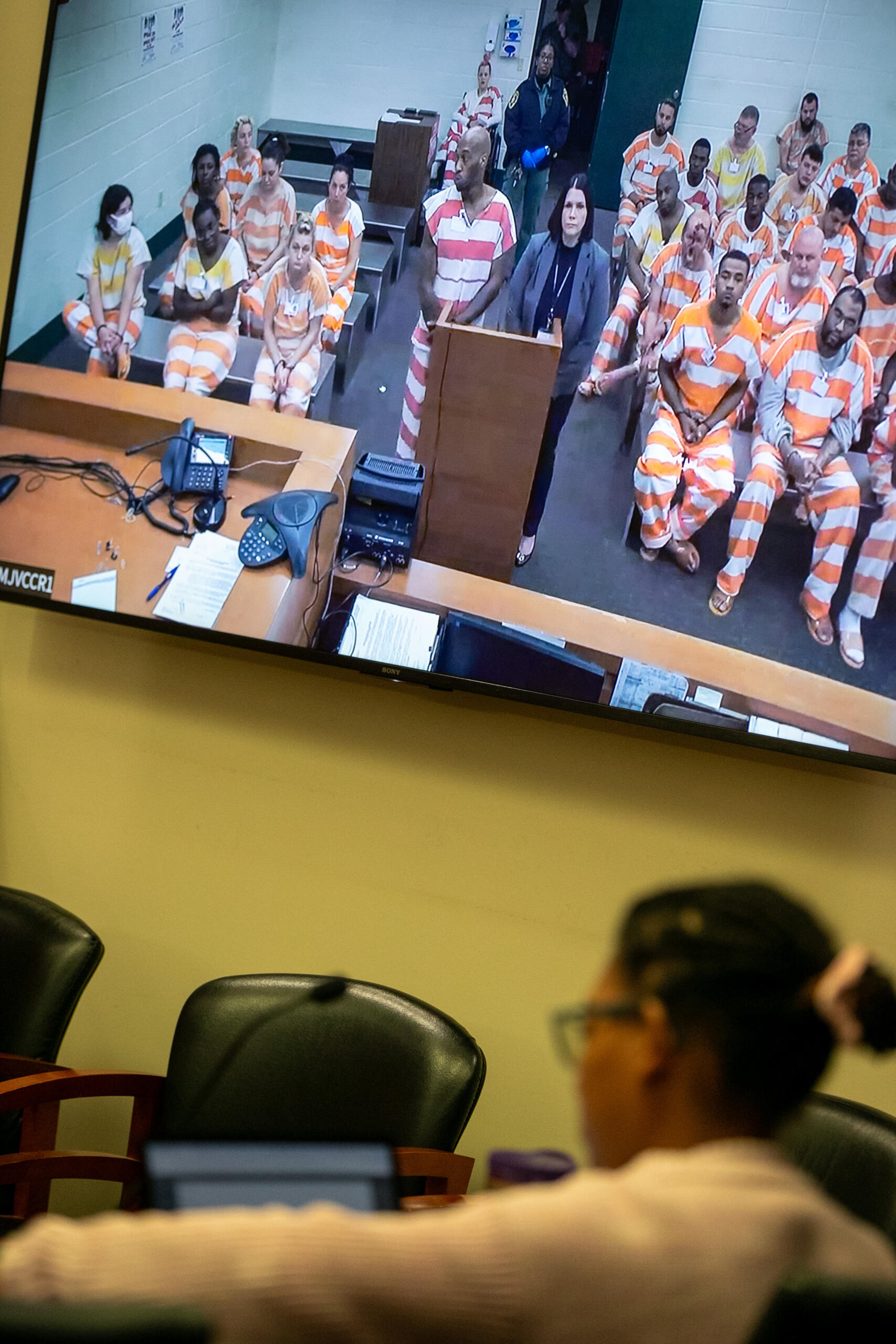 Albert Shell Jr. was part of the assembly line of accused men and women appearing before Judge Thomas P. Thompson III Tuesday. In Marion County, first appearances are conducted remotely from the jail courtroom and viewed on television monitors in the courthouse.