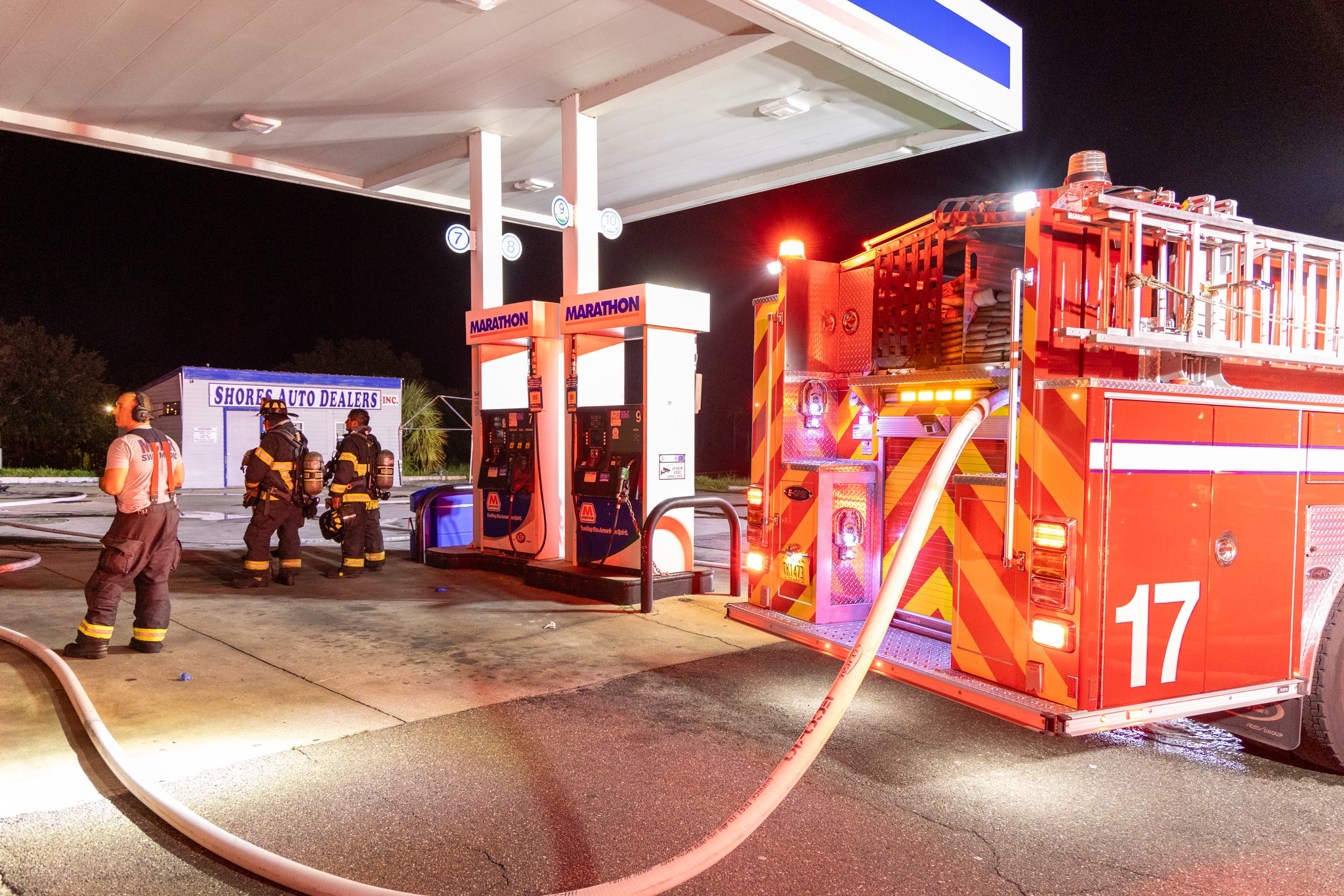 Units responded to the blaze at a Marathon gas station in the 9400 block of SE Maricamp Road in Ocala around 11:30 p.m. MCFR says a 911 caller in the area reported the fire.