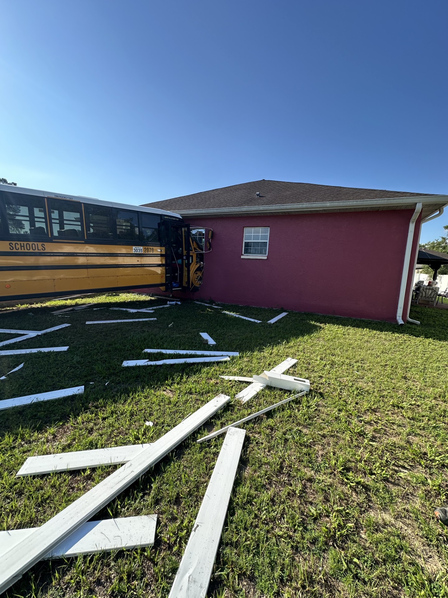 The bus, on the other hand, smashed into the side of a home located at 12978 SW 31st Avenue Road