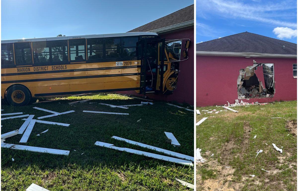 MARION COUNTY, FL (352today.com) – A collision between a Marion County Public School bus and a truck caused the bus to plow into the side of a house.