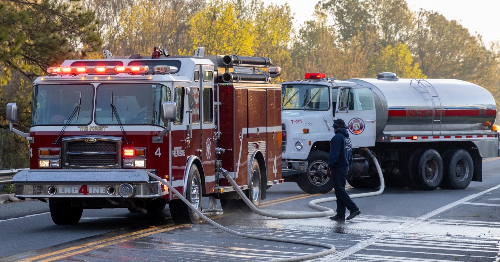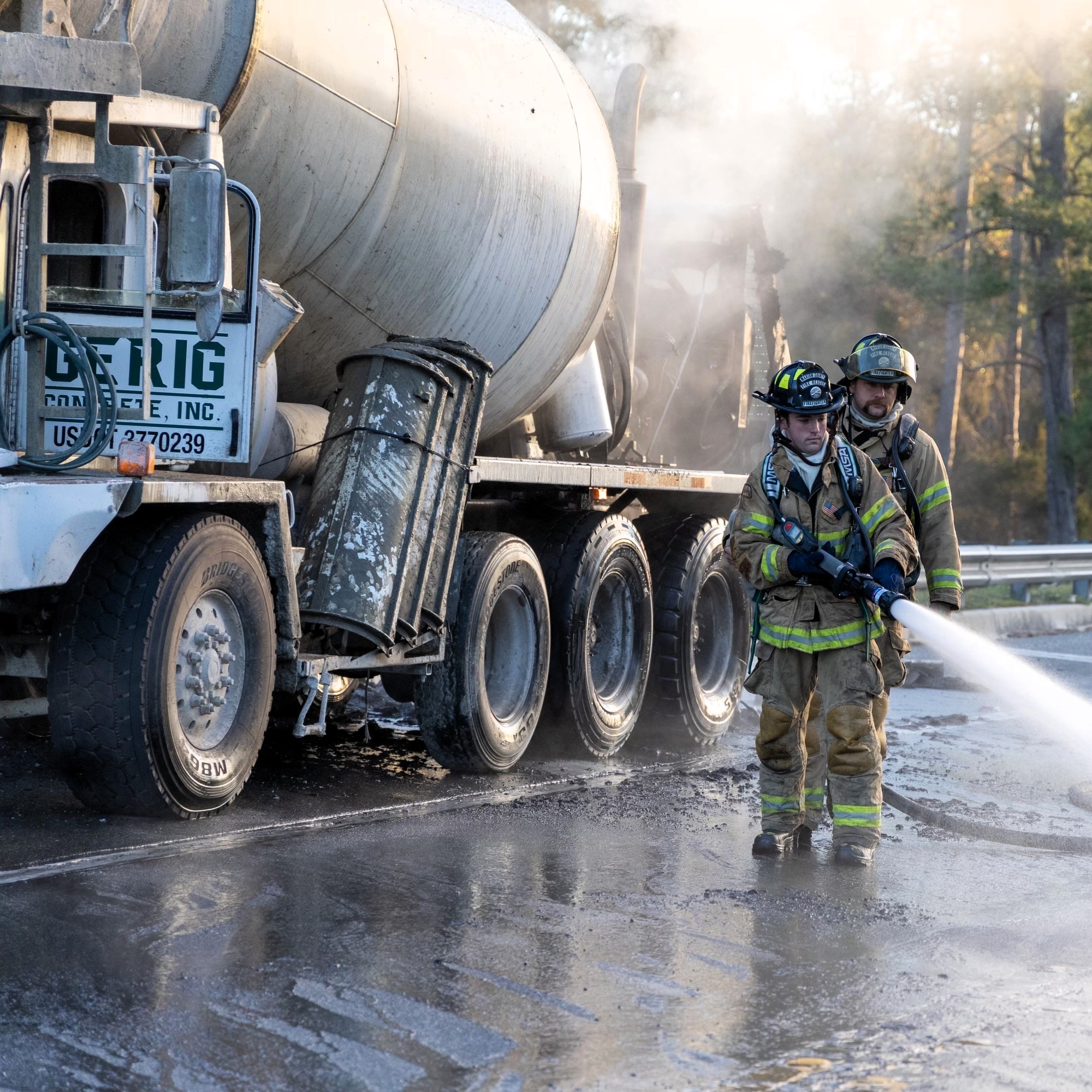 MARION COUNTY, FL (352today.com) – Marion County Fire Rescue (MCFR) says firefighters responded to a concrete truck on fire on Thursday around 7:00 a.m. just west of the Ocklawaha River Bridge on East Highway 40 in Silver Springs after receiving multiple calls.