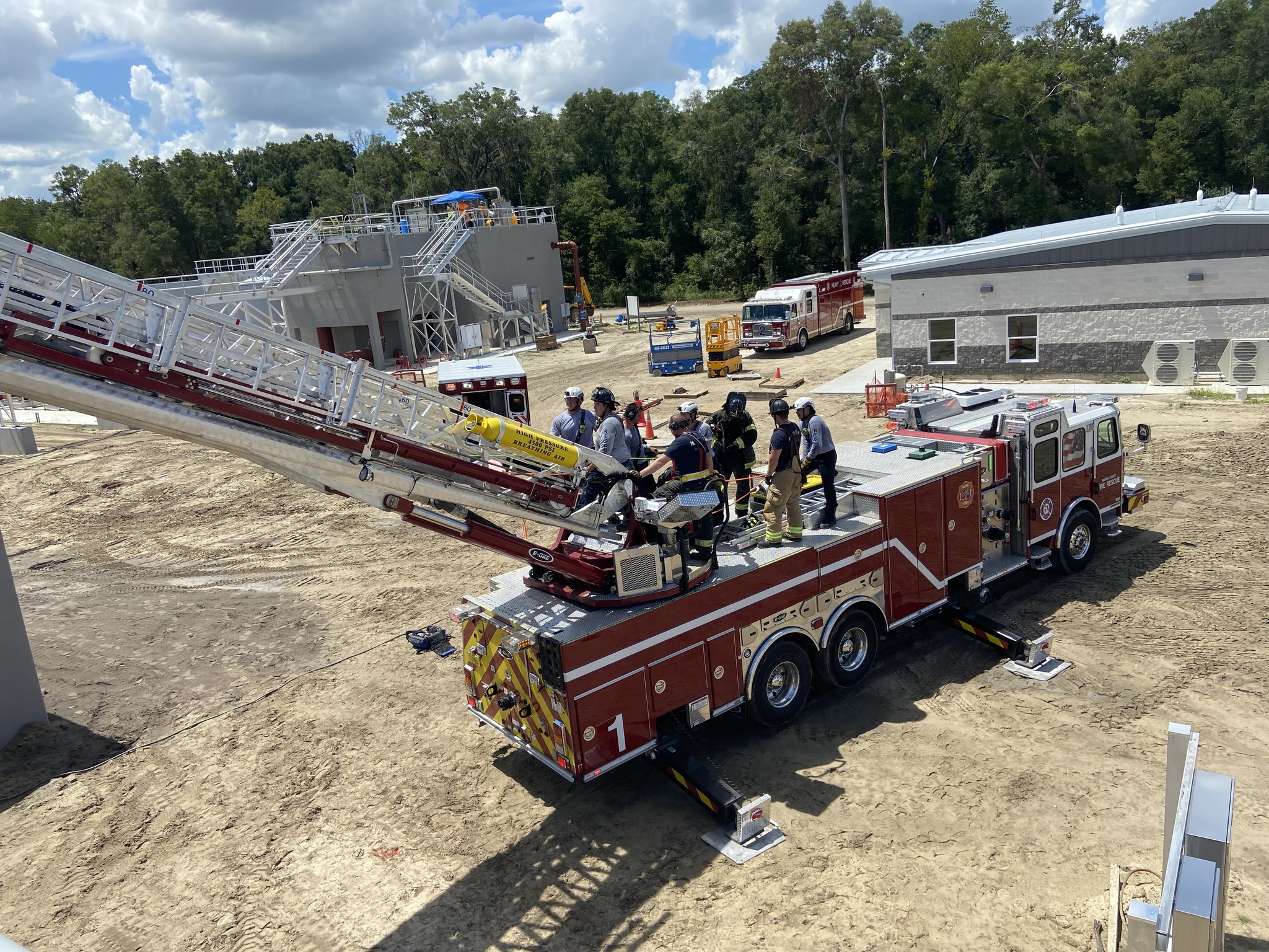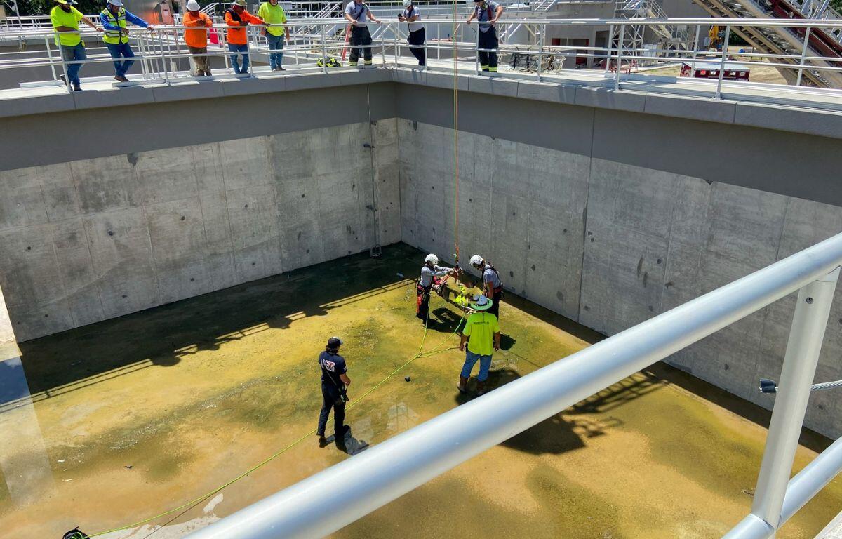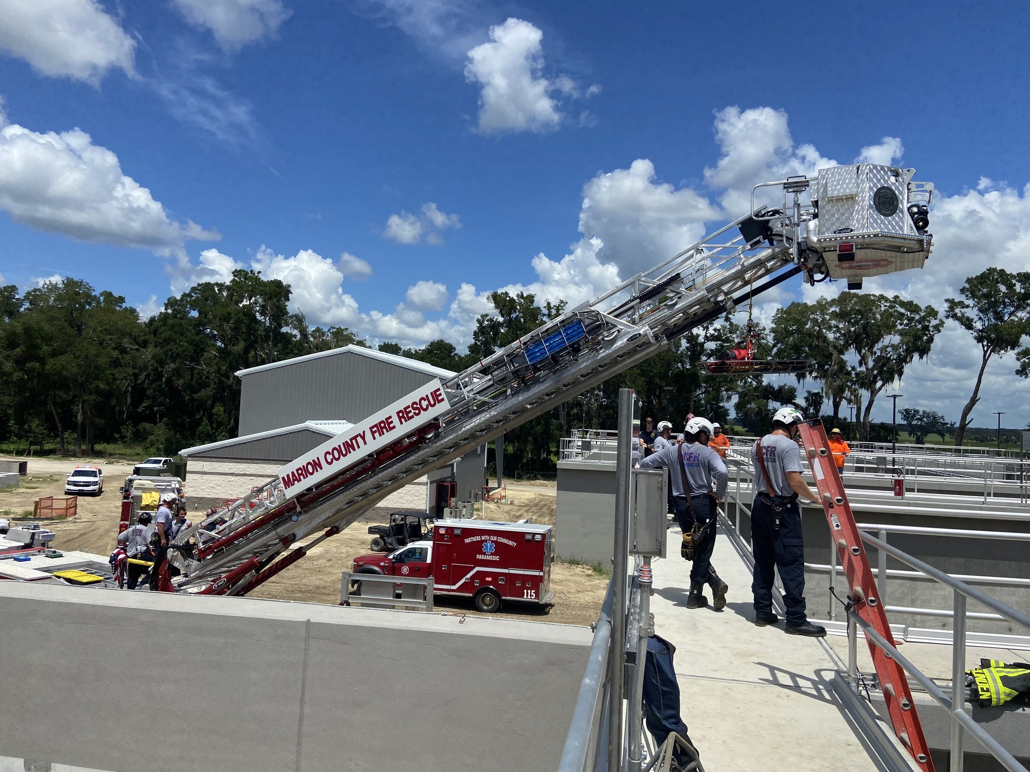 MARION COUNTY, FL (352today.com) – Units with the Marion County Fire Rescue (MCFR) team helped an ailing construction worker who fell into an empty wastewater tank.