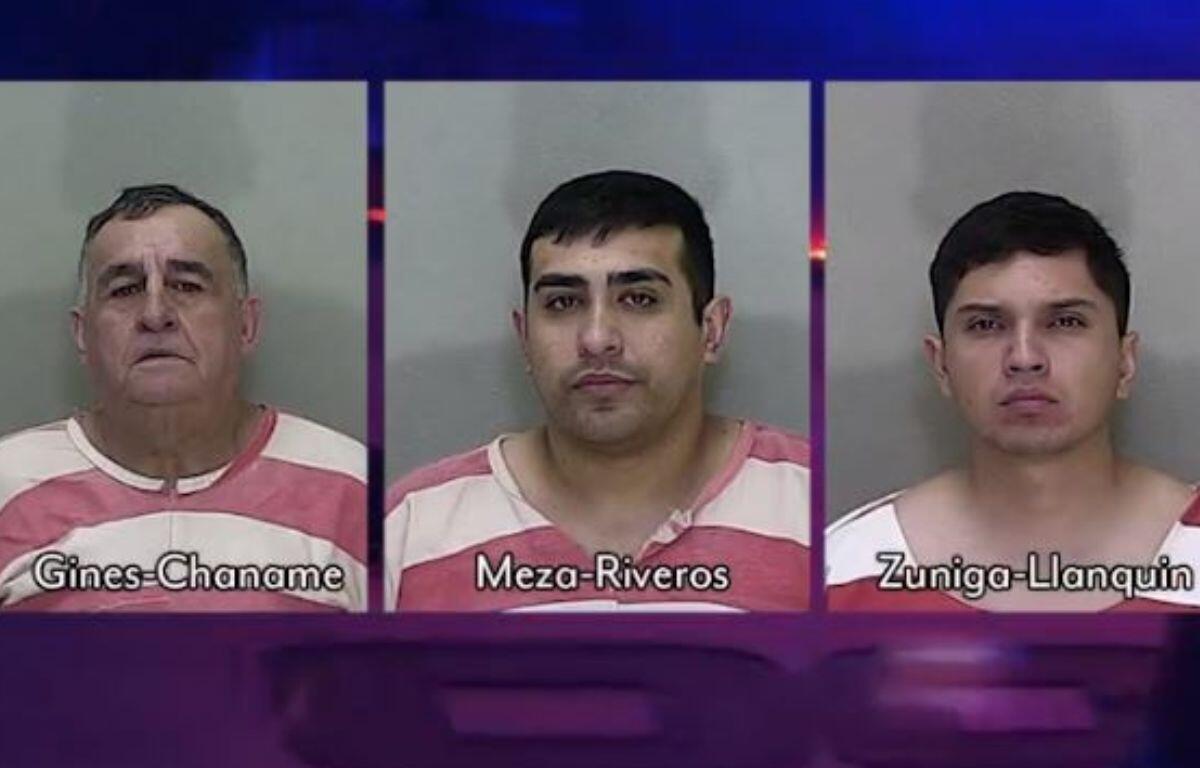 Police booked 51-year-old Eziquel Gines-Chaname, 25-year-old Matias Meza-Riveros, 27-year-old Diego Zuniga-Llanquin into the Marion County Jail and charged them with multiple felony offenses.