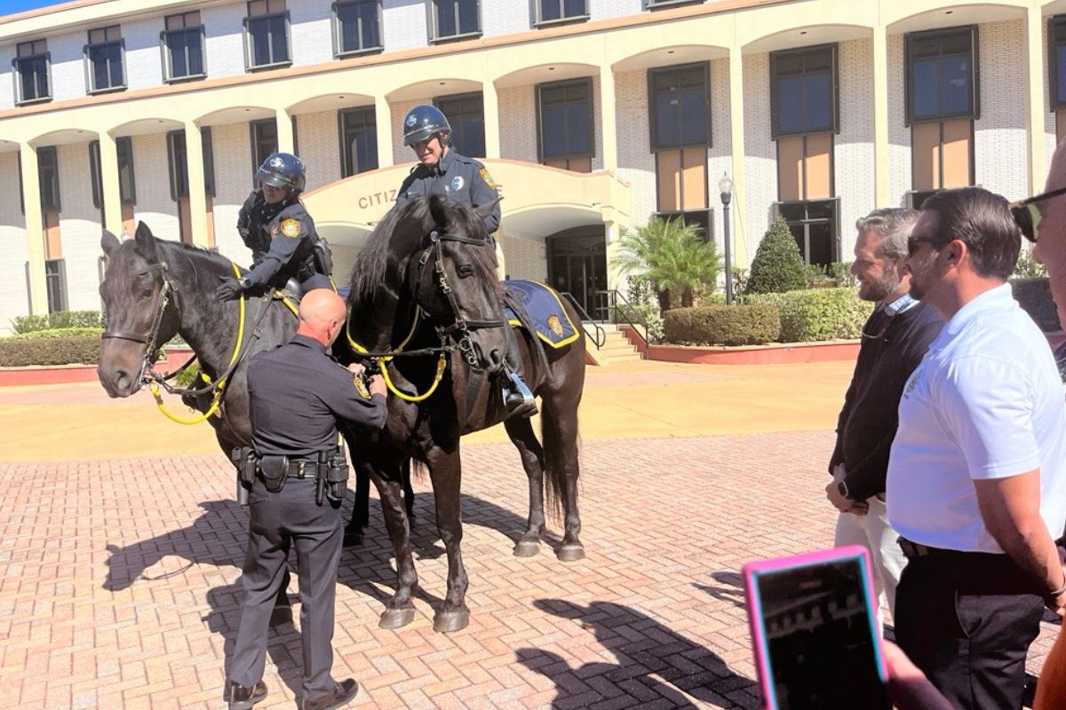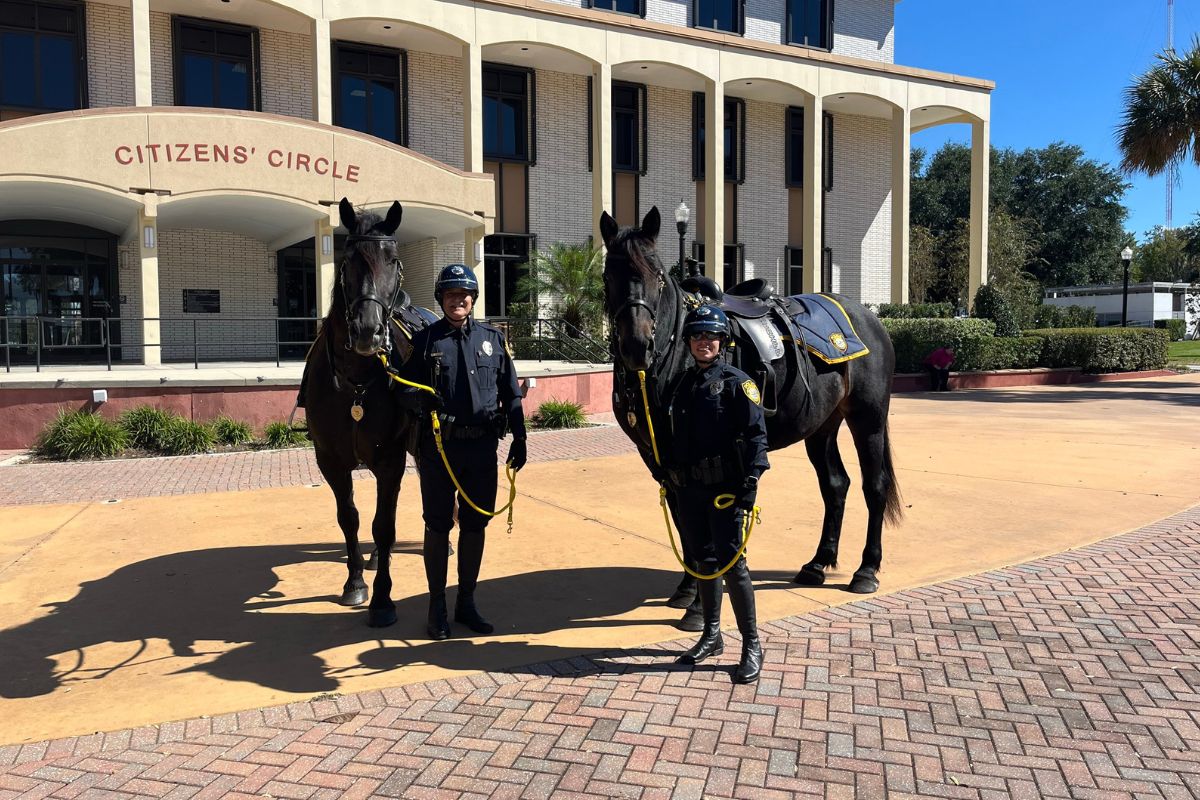 Florida Mounted, a 501 (c) (3) nonprofit, also played a critical role in seeing the mounted patrol unit become a reality. Officers Eddie Leedy and Cheyenne Boyer on Lancelot and Merci May were ready to engage the community Wednesday afternoon.