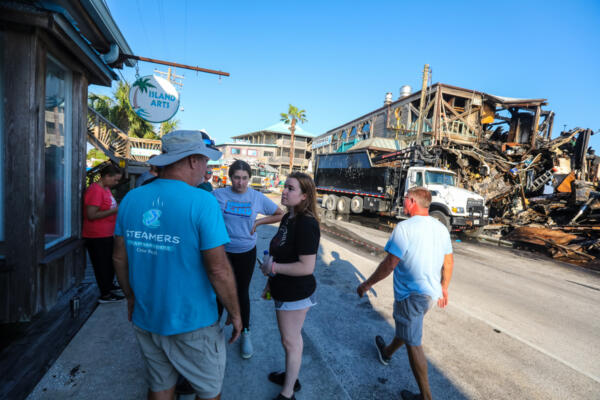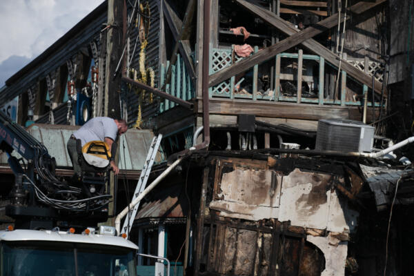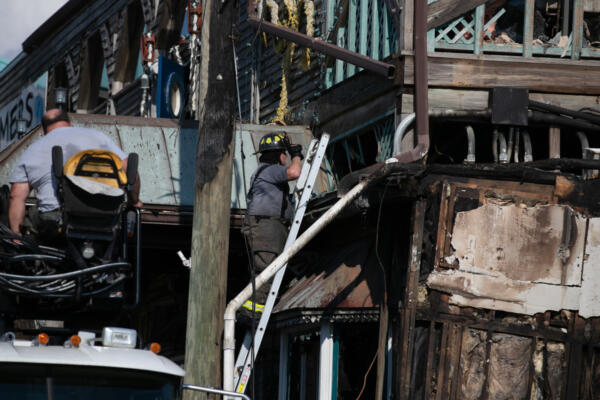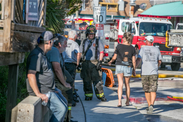 Robinson says that the fire started in the building that was once Duncan’s on the Gulf Seafood Restaurant. “That’s not there anymore,” he says. “Duncan’s was damaged from Hurricane Idalia. They were in the process of trying to get documentation to start repairs.”