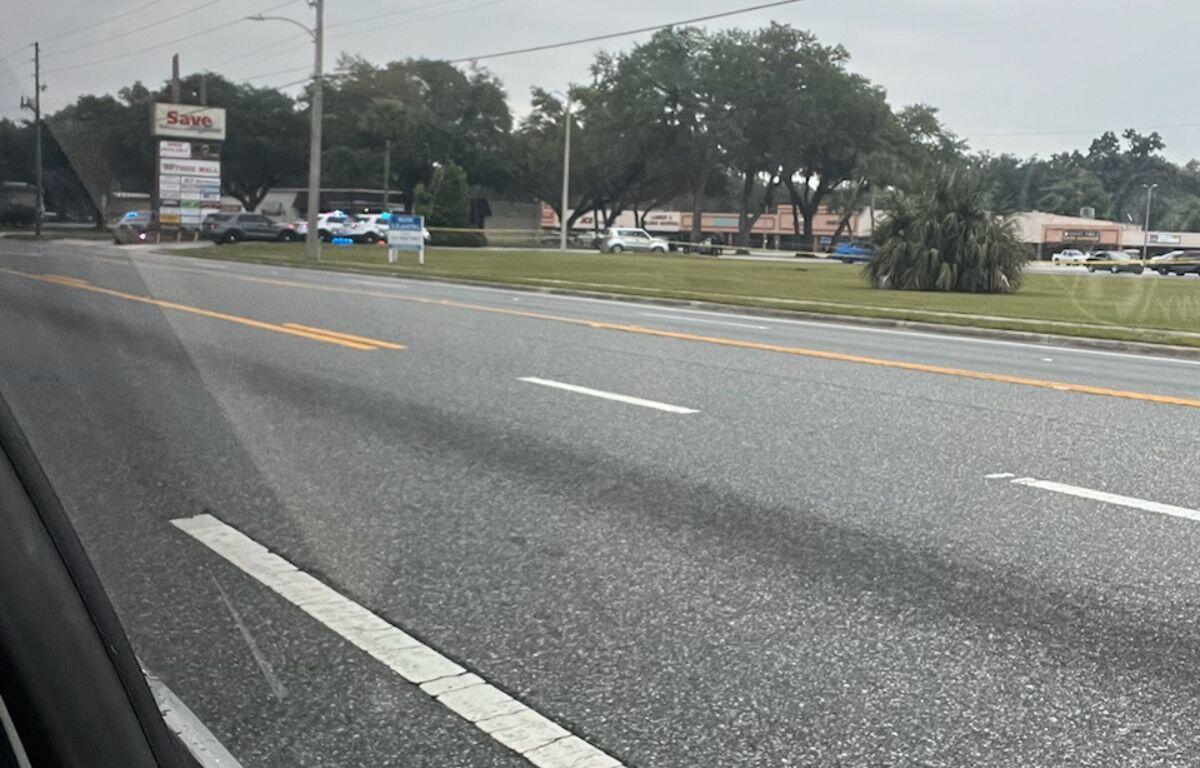 ORIGINAL, 5/14/2024: Multiple law enforcement vehicles blocked the entrance to a shopping center on U.S. Highway 301 in Wildwood Tuesday morning.