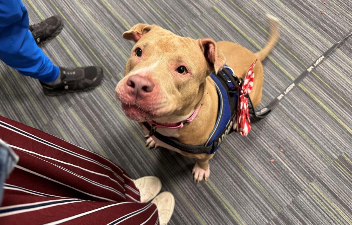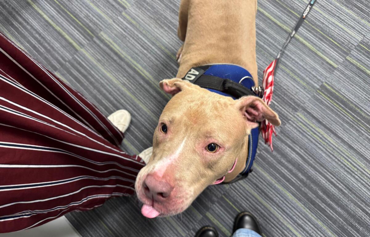 With a tail that never stops wagging and a playful spirit, it is hard to believe Georgia is 6 years old. When this pretty lady gets excited, she does not run, she hops. As she hops with enthusiasm, she recharges by lying on the floor belly side up before continuing to bounce to her heart’s content. Among Georgia’s endearing qualities, she believes she’s a lap dog, so the term “personal space” does not exist in her pup vocabulary. With a balanced combination of zoomies and asking for affection, there is no doubt that Georgia is 70 pounds of pure love.