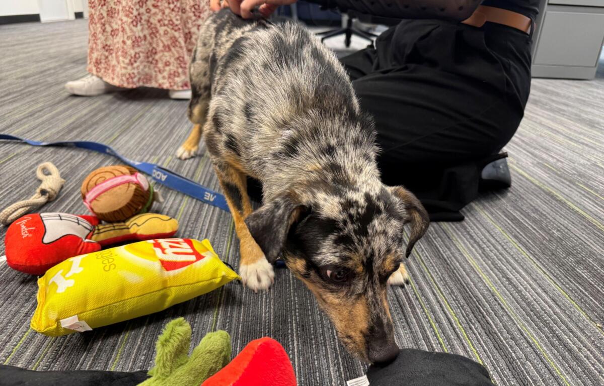 The MCAS staff believes Wigglebutt is fully grown at 23 pounds. They think he may be a mix of an Australian Cattle Dog or some shepherd Mix. Sir Wigglebutt is well-suited to both dogs and cats, making him an ideal companion for a home with other pets to play with.