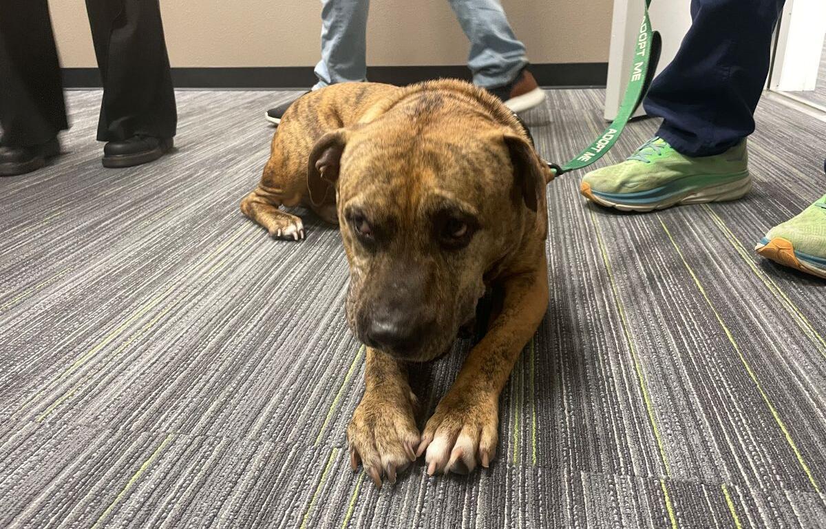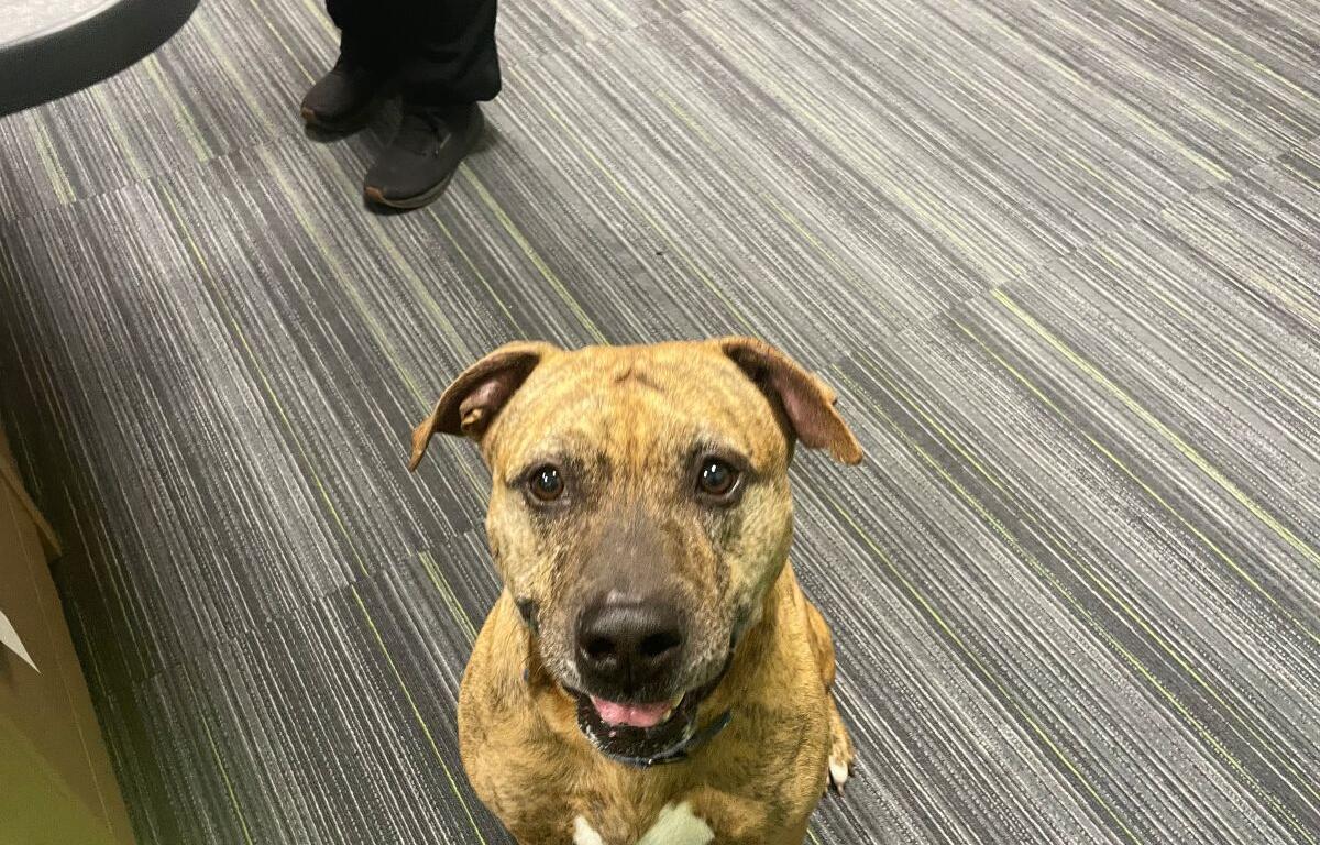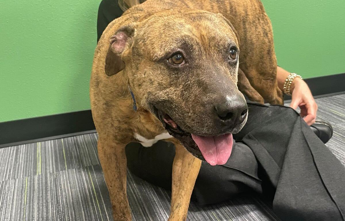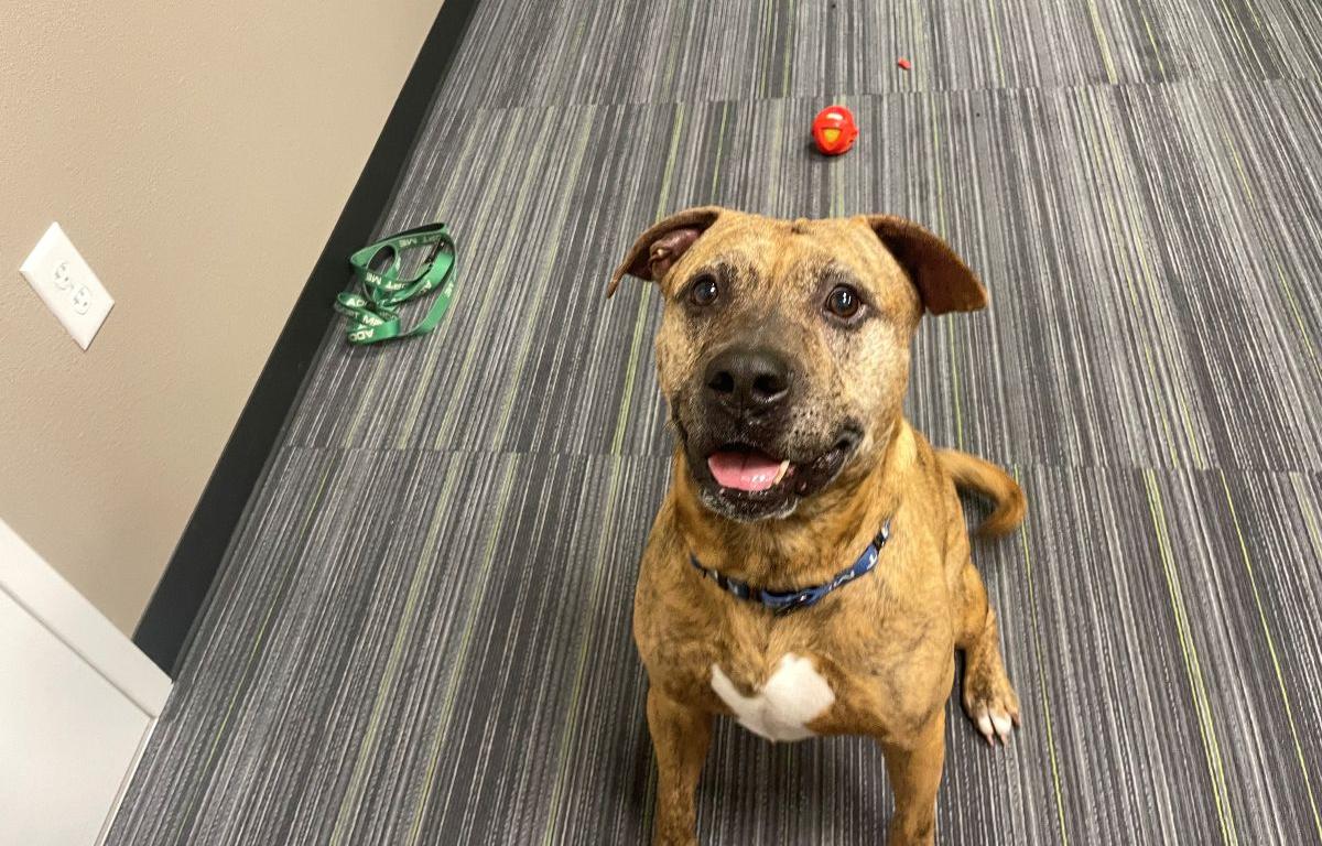 Orion is approximately six or seven years old, gets along well with other dogs and loves to chase balls and play tug-of-war with his toys. He’s a powerful 60 pounds, so a household with older kids who love horseplay and can handle a boi who might pull on the leash would make a perfect new home.