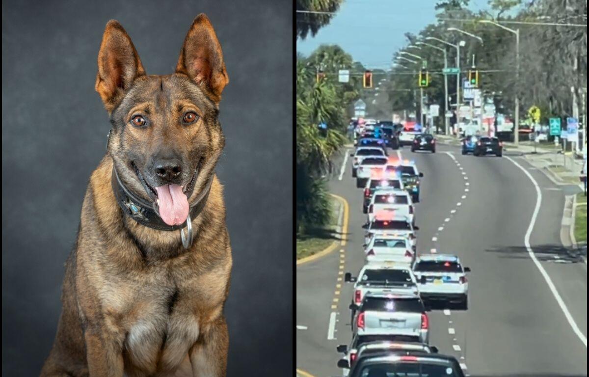 A convoy of law enforcement escorted K-9 Leo back to Ocala on Tuesday from Gainesville where he died at UF Veterinary Hospital. Vincent Hampton noticed the procession and captured video of it on Northwest 13th Street in Gainesville.