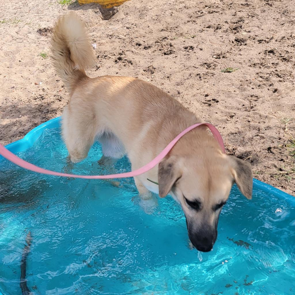 SCAS says Aurora has a big personality. She is friendly with humans and playful with other dogs, too. She loves attention, scratches and playing in the pool.