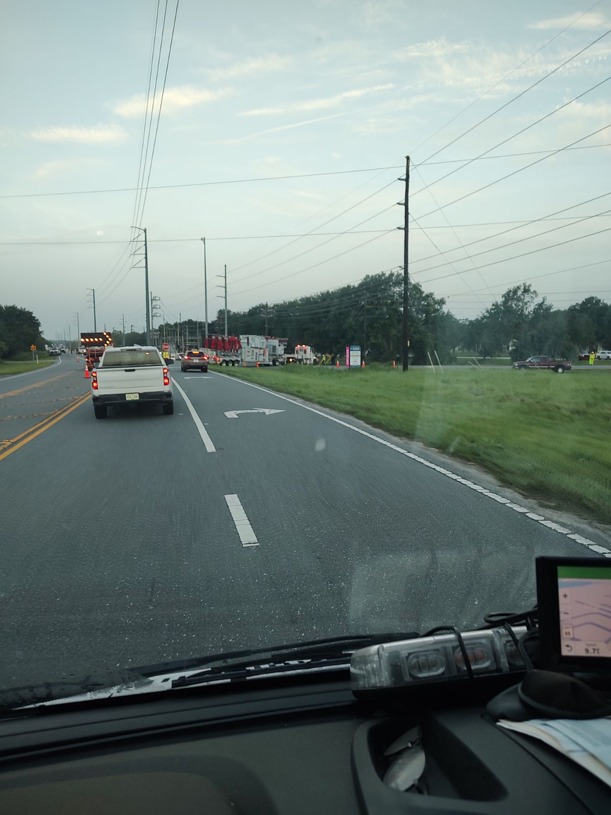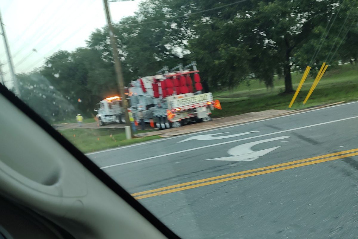 The sheriff’s office says this is due to a fire at an electrical substation that was caused by lightning. Emergency personnel are currently on scene blocking the road.