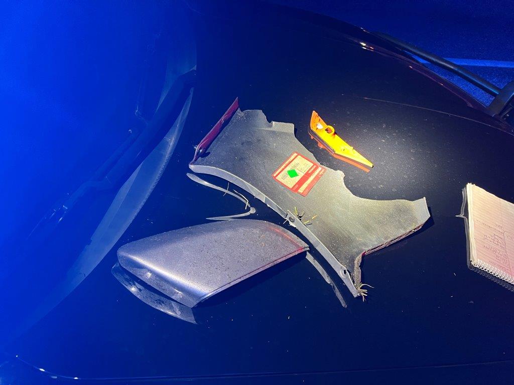 FHP says based on vehicle parts found at the accident scene, they are searching for a gray or silver 2020 Honda Civic. There is currently no description of the driver.