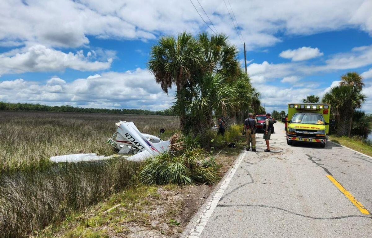 HCFR says the plane lost power and the pilot attempted to land on Pine Island Drive when it struck a palm tree, slicing the plane in half.