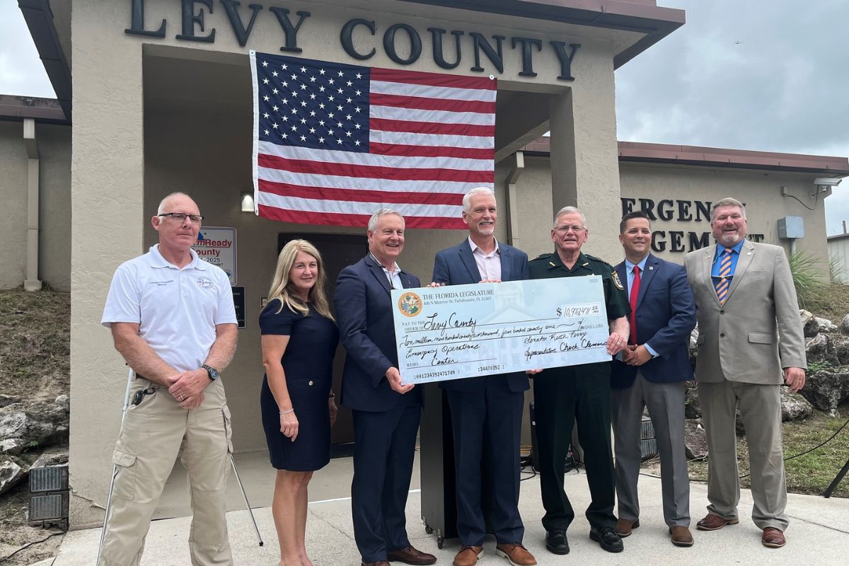 The check was presented on Monday, Sept. 16, 2024, in front of the current emergency operations facility